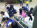 今日は、ゲストティーチャーの宮岡さんと園芸応援団の保護者の方とともに