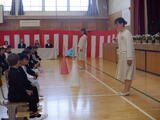 司会の先生が「立ちましょう」と声をかければ、スクッと立ち、そろって礼をしてました。とても素晴らしい姿が見られました。6年生もお祝いをしてくれました。大きな栗の木の下でと校歌を歌ってくれました。