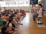 カルビー・スナックスクールの方に講師に来ていただき「おやつとの付き合い方」についてききました。食品に含まれる塩分量についてのクイズをしました。